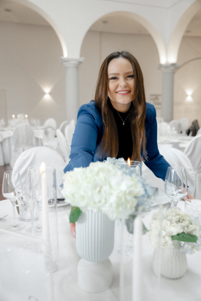 obwohl ich es schon immer liebte, Geburtstage und Familienfeiern zu organisieren. Diese Welt öffnete sich für mich erst, als ich eine Hochzeitsplanerin aus Heidelberg kennenlernte, die mir Einblick in ihre Arbeit gab. Was sie beschrieb, traf mich wie ein Blitz – und ist seitdem nicht mehr aus meinem Leben wegzudenken.